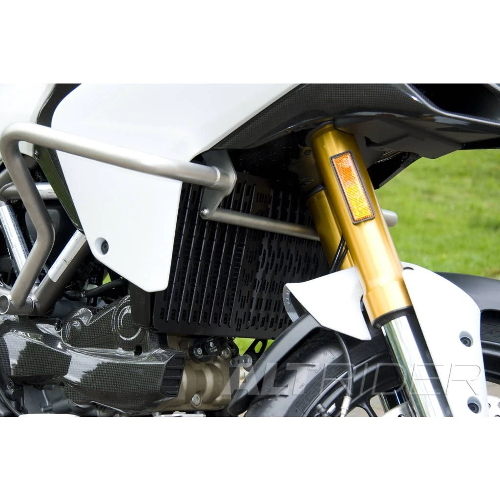 AltRider Radiator Guards help prevent rocks and road debris from harming the fragile yet primary component of your bike’s cooling system. The corrugated design not only adds rigidity but also helps to channel cool air into and through your radiator; often more efficiently than OEM. Made from 1/16 inch (1.5 mm) anodized aluminum, the guard is capable of deflecting debris or absorbing the impact of larger objects to ensure your ride doesn’t get cut short.