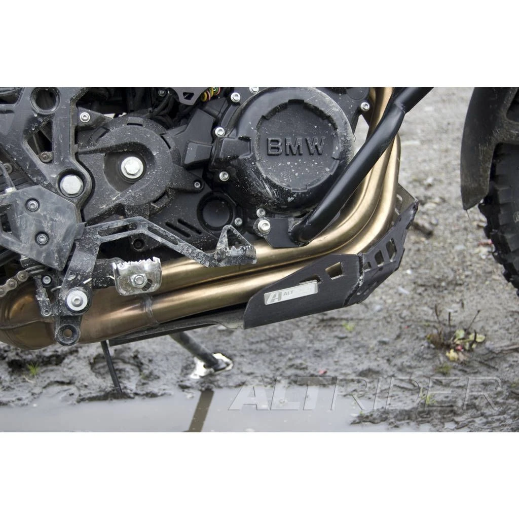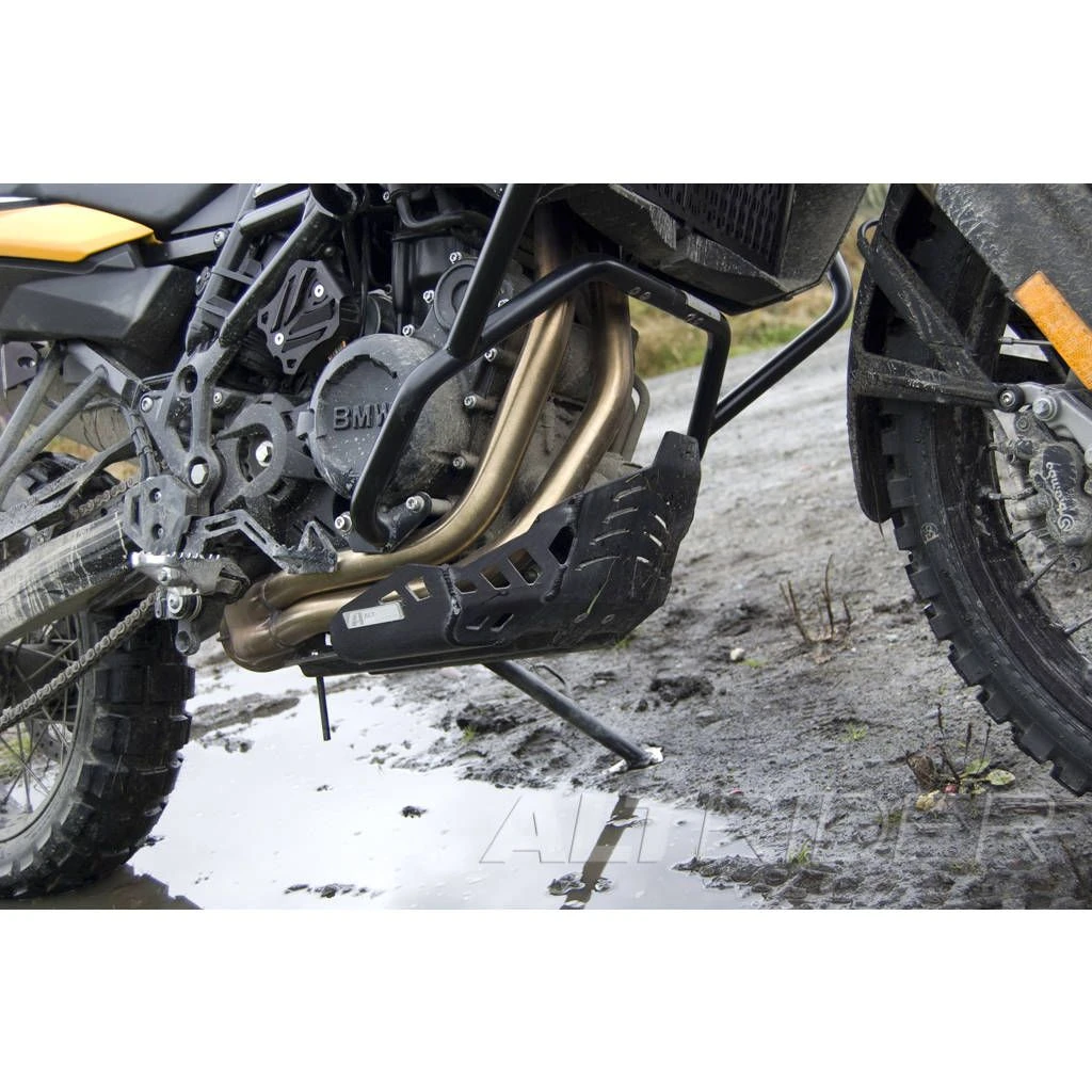 Adventurous routes are fun, but can pose a threat to your engine. Protect it in style from rocks, dirt and kicked up debris by installing an AltRider Skid Plate. Made of 3/16 inch (4.75 mm) anodized aluminum, the skid plate offers coverage to the oil filter, heat exchanger and header pipe. It closely conforms to the underside of your bike for protection that doesn’t sacrifice ground clearance. No matter where you ride, you can keep going without worry by installing an AltRider Skid Plate.