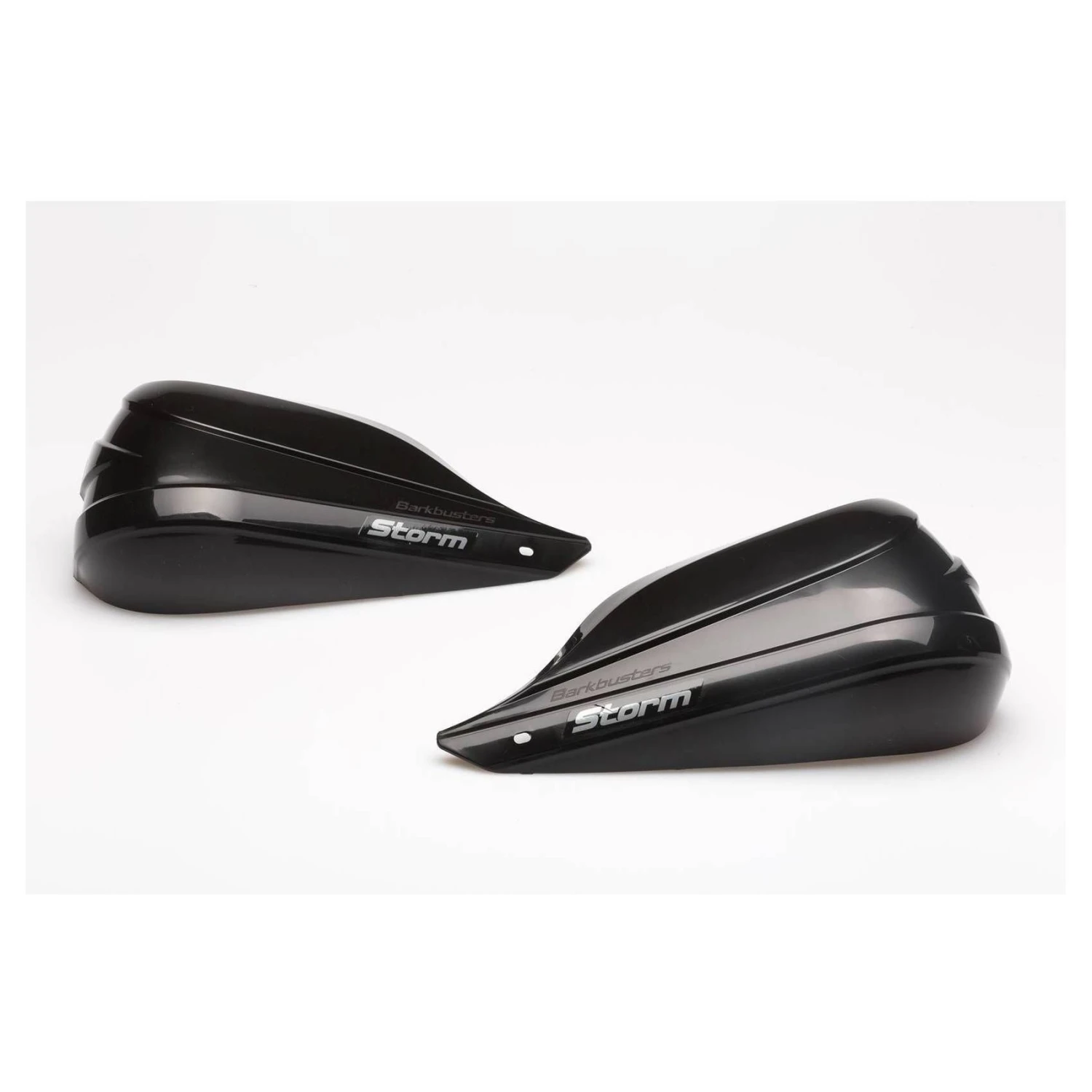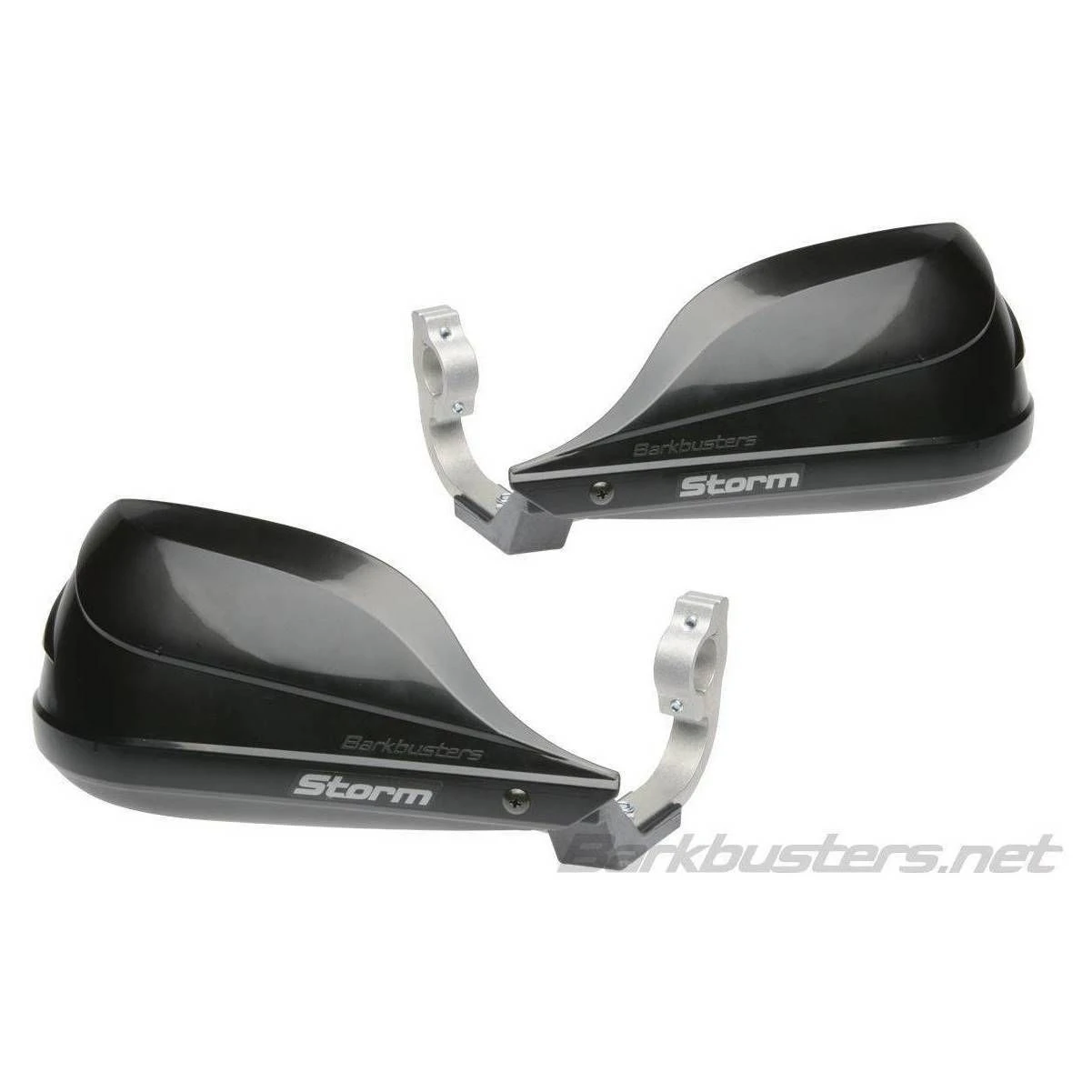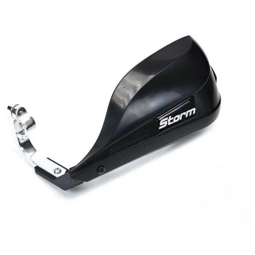 Barkbusters Storm Handguards have an aerodynamic design and a larger profile that wraps around the hands to provide maximum protection from the elements but minimal crash protection as there is no aluminum backbone or handlebar end mount.