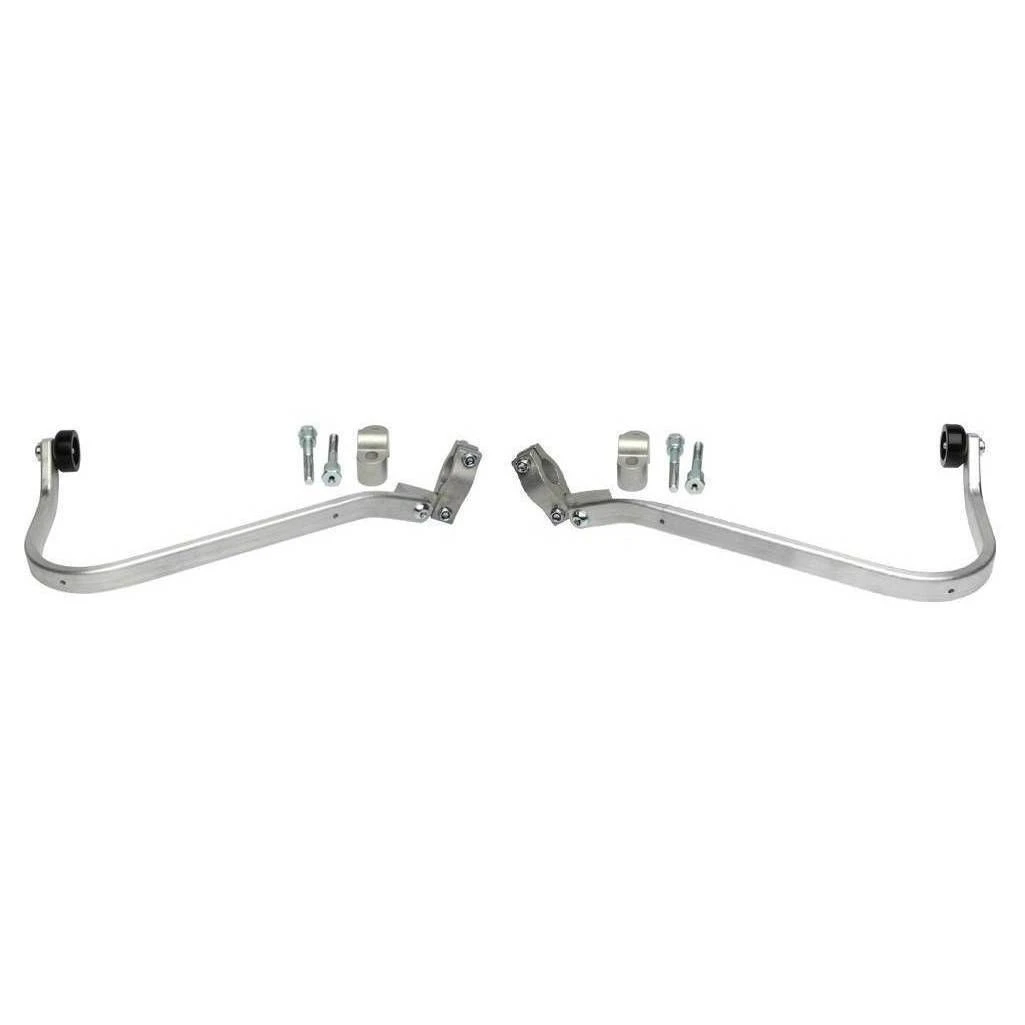 Handguard kit bolts up to the end of your bars and onto a second mount that clamps directly on your bars, inward, in front of your controls. This two-point approach forms a cage around your hands and also protects your handlebar controls to prevent or minimize damage in a crash scenario. Bike-specific hardware is designed to clear throttle cables, hydraulic lines and other interferences found within individual bike models.