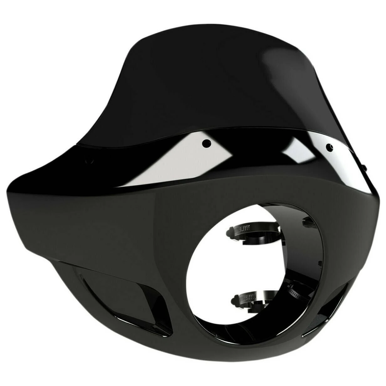 The Touring Sport fairing embodies an aggressive cruiser style (inspired by FXR and T-sport DNA). The sweeping lines flow nicely with the motorcycle and look great with a variety of handlebar setups. Flanking the headlight bucket are two styling pockets with great potential for further customization with lighting. The fairings are made of high quality molded ABS and paired with an opaque impact resistant acrylic windscreen for strength and durability. Included with all fairings is a universal mounting kit consisting of black powder coated heavy duty steel brackets with a range of adjustability fitting 35mm-49mm forks and made to fit most 5.75″ headlights. Take your next expedition with the Touring Sport Fairing. Available in a tall or short windscreen option.