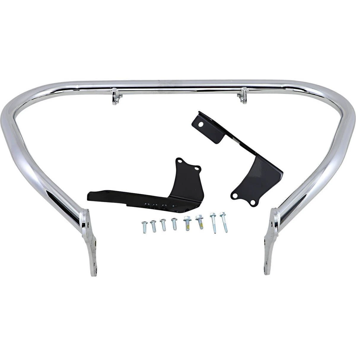 Our latest freeway bar features a V-Bend for a more up-to-date look. The bar angles in for a sharper profile than a traditional hoop-shaped freeway bar. The 1.25-inch diameter bar is available in either a chrome or black finish. Will not fit models with extended reach controls.