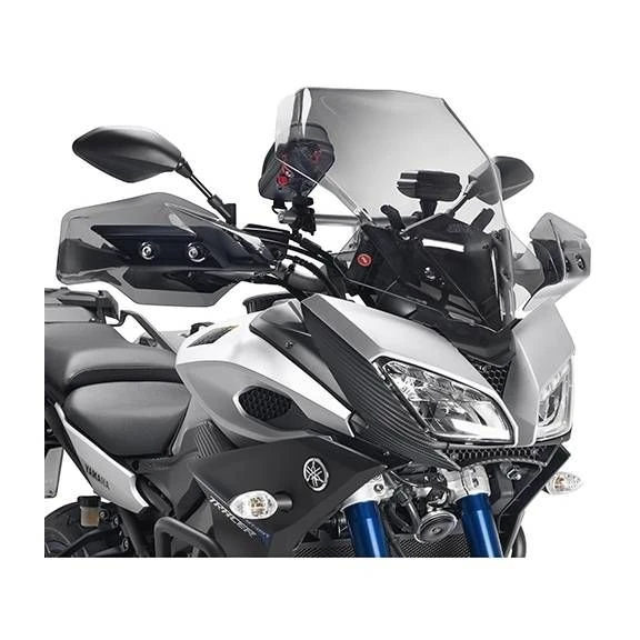 Smoked plexiglass extension for OEM Yamaha FJ-09 handguards designed to provide more protection from the wind, rain, cold and debris. The Givi EH2122 hand guard extensions mount to the stock factory hand guards.