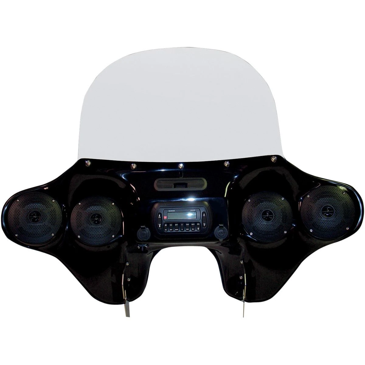- Includes 180 watt JBL Black Box Portable Media Edition AM/FM radio and four 5in. coaxial marine speakers for great sound at any speed with any pipes