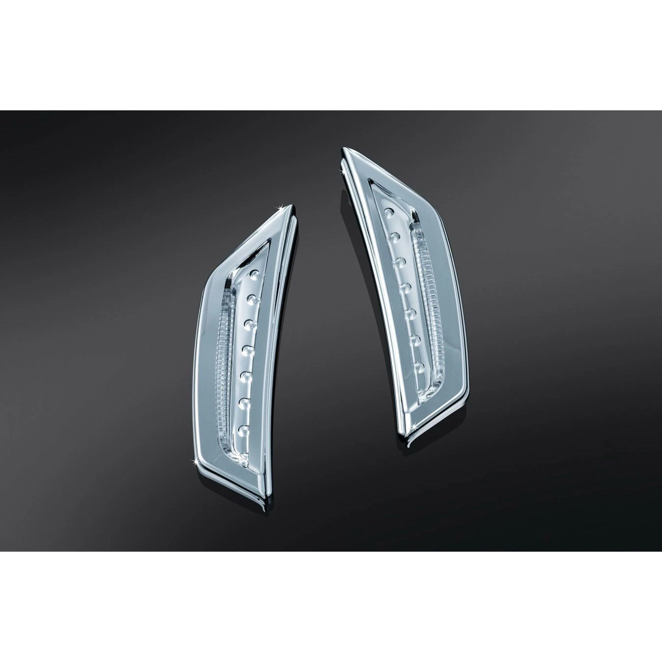 Dress up the front of your fairing with our Chrome Fairing Intake Scoops. Easy peel & stick installation available with or without L.E.D. lighting.