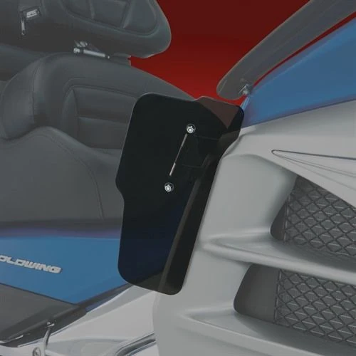These Side Fairing Wind Deflectors for the GL1800 Goldwing feature 100% hidden mounting to provide a cleancustom look. No drilling required. These new Lower Side Fairing Wind Deflectors work great in combination with Big Bike Partsยฎ, 52-665U, Upper Side Fairing Wind Deflectors to truly provide a quiet riding envelope for driver and passenger. Both upperand lower systems easily pivot to channel in air for those hot days you need more air to cool off. The custom contoured panels maximize the function and appearance of this great accessory. Fits GL1800 2001-12.